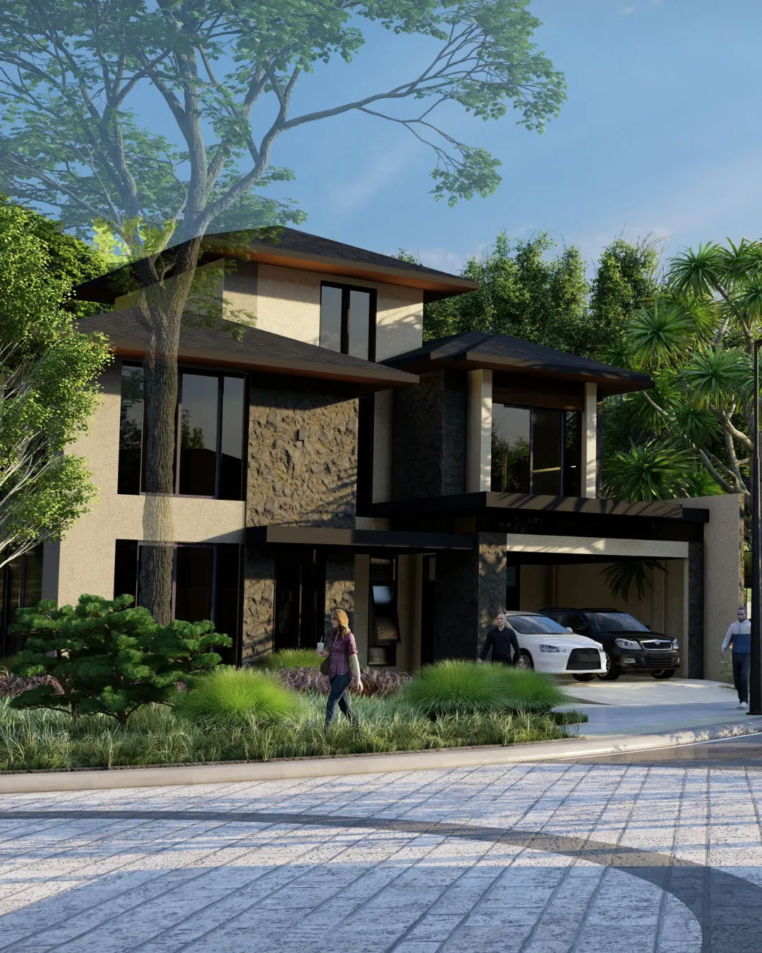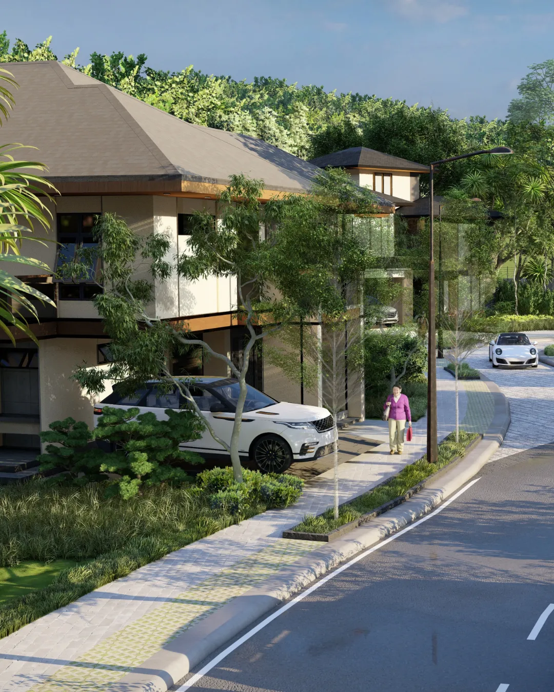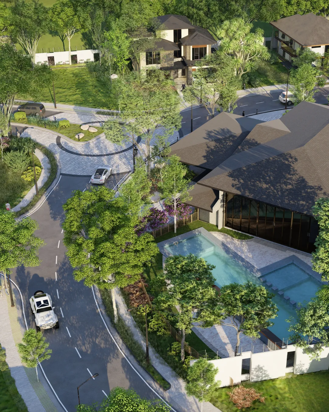 A botanical garden community inspired by Belgium's Ardennes Forest. Three purposefully designed garden spaces — Wellness, Social, and Creative — woven into every street and walkway.